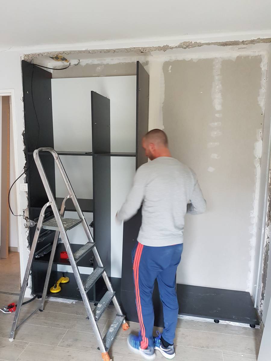 La réalisation de ce rangement sur mesure à Velaux témoigne d'une collaboration exceptionnelle avec notre client, marquée par une confiance totale en notre expertise. Dans ce projet unique, aucune reprise des murs n'a été nécessaire suite à la casse, soulignant la qualité de notre intervention.