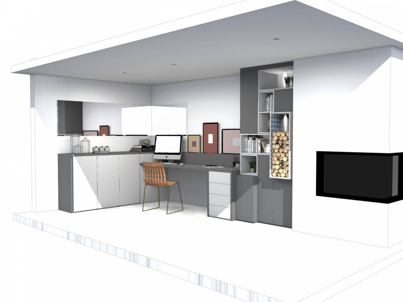 Une visualisation 3D a été créée pour la cliente, facilitant la projection de ce nouvel espace de vie dans le séjour.