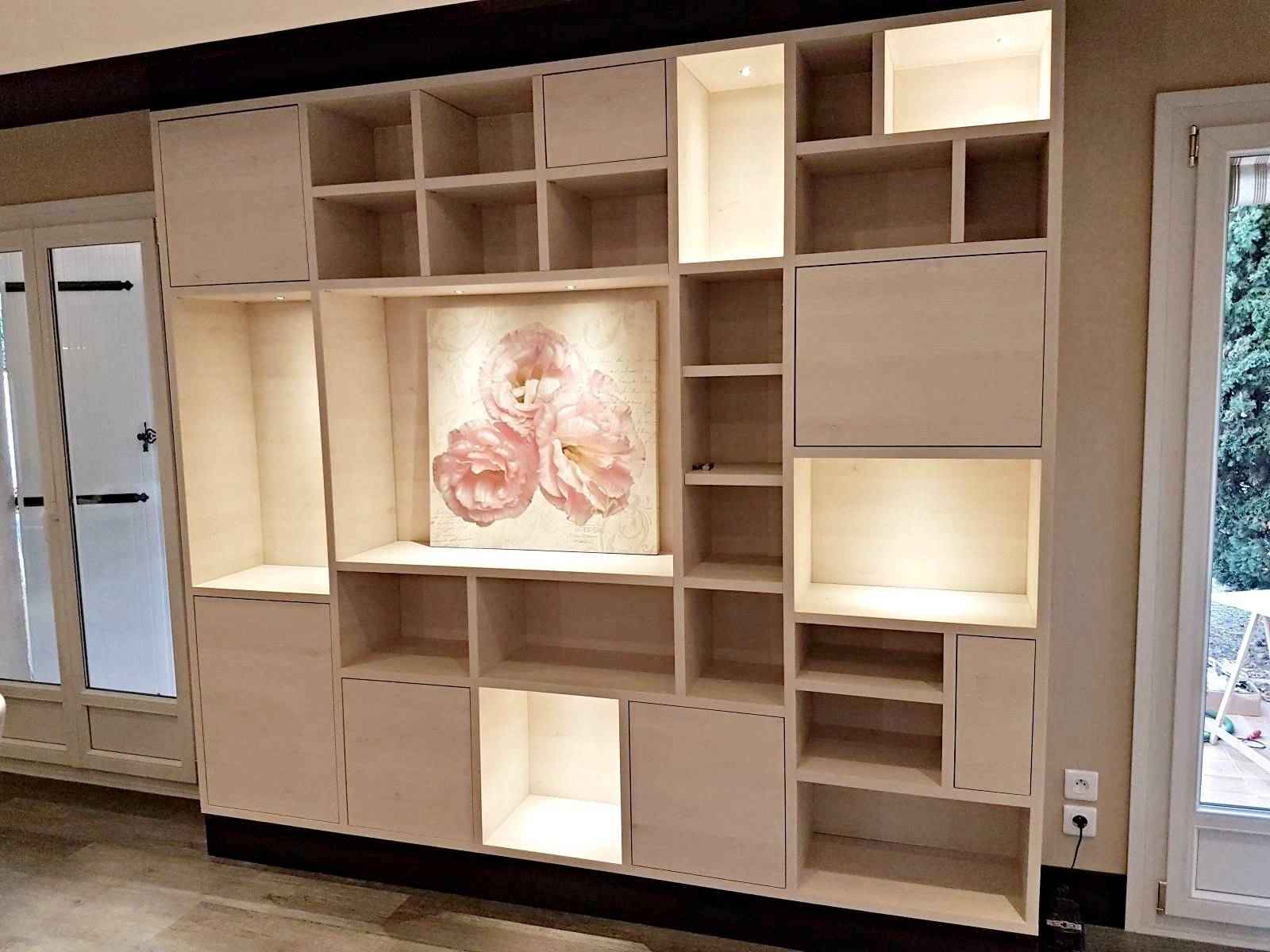 Création d'une bibliothèque sur mesure avec niches éclairées à Aix en Provence