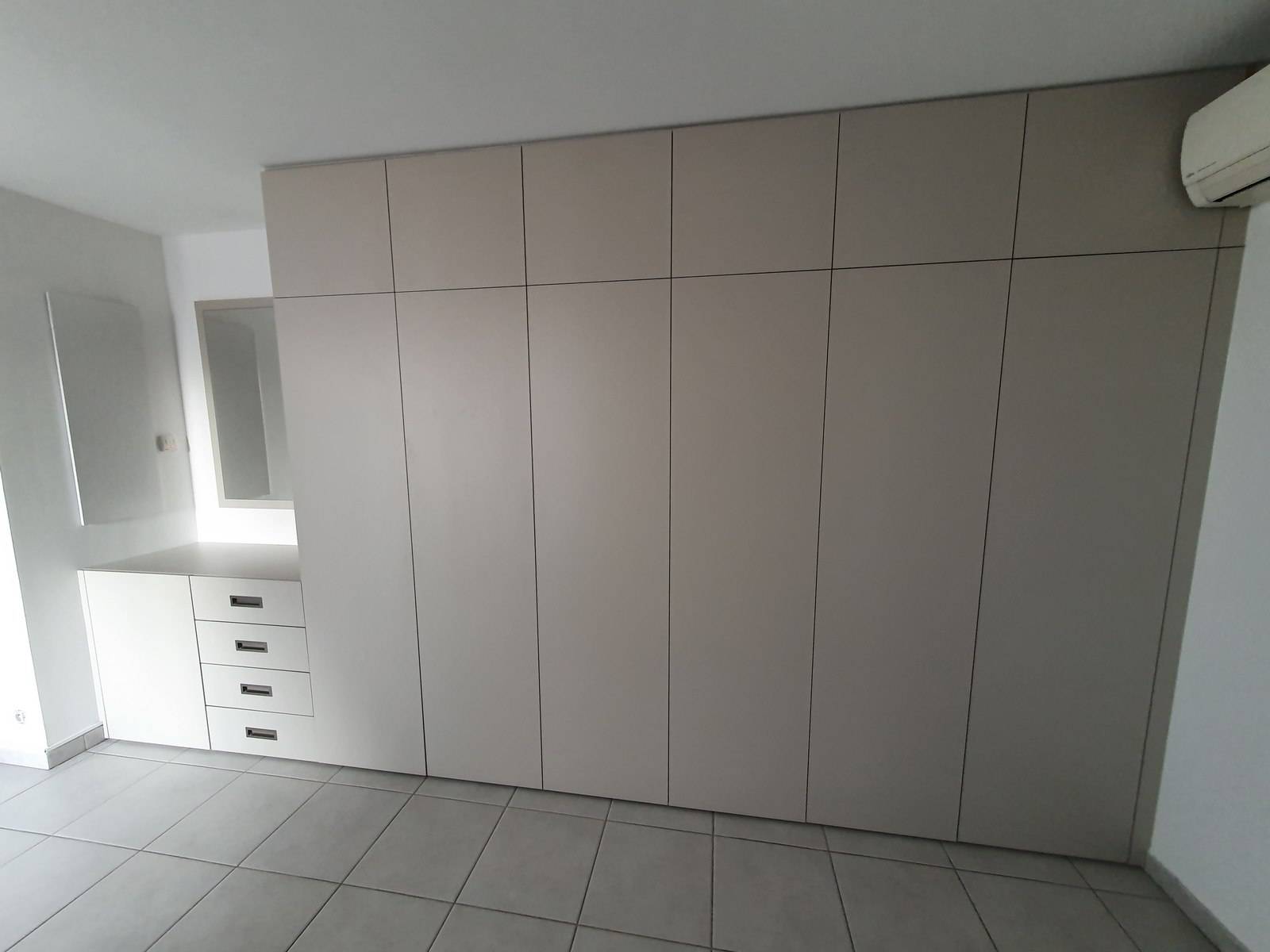 Pour répondre à ces exigences, nous avons opté pour une solution astucieuse : la séparation des portes hautes et basses avec un joint creux, non seulement pour des considérations esthétiques, mais également sans poignée afin de préserver la légèreté de la structure. Cette configuration permet de minimiser la perte d'accès à la porte adjacente à la climatisation, assurant une ouverture fluide grâce à une porte en alignement.