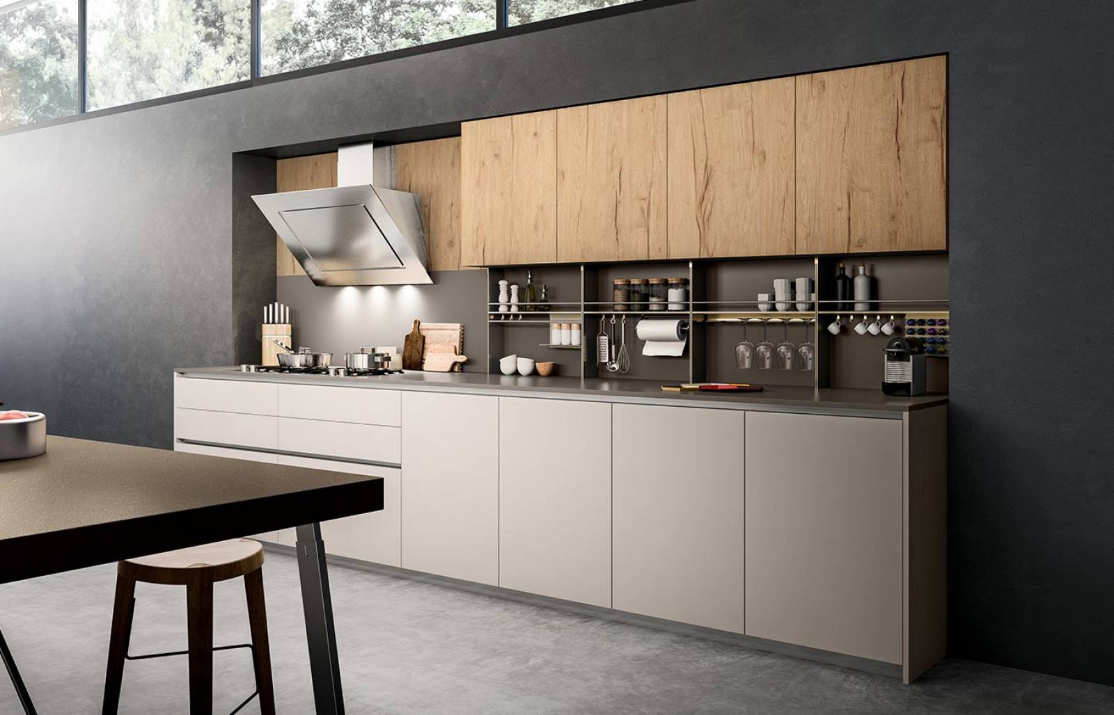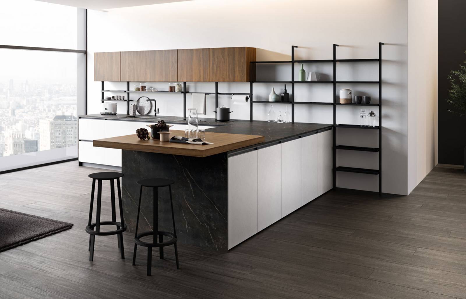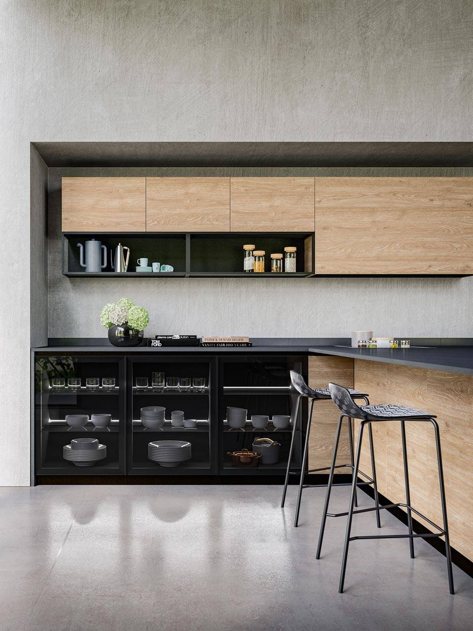 L'usage de matériaux innovants ouvre la voie à de nouvelles formes et concepts, fusionnant harmonieusement innovation et tradition. Nos portes, robustes avec une épaisseur constante de 22 mm, créent un environnement spacieux où se déploient des structures solides et compactes, abritant des fonctionnalités, des rangements et des espaces parfaitement agencés.