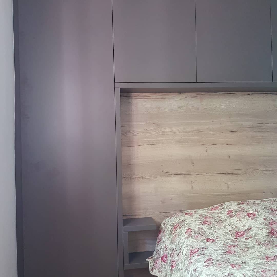 Cette tête de lit sur mesure, conçue à Fuveau, se distingue par ses rangements optimisés en hauteur, équipés d'un ingénieux système d'ouverture en pouss lach' tout en préservant des ralentisseurs.